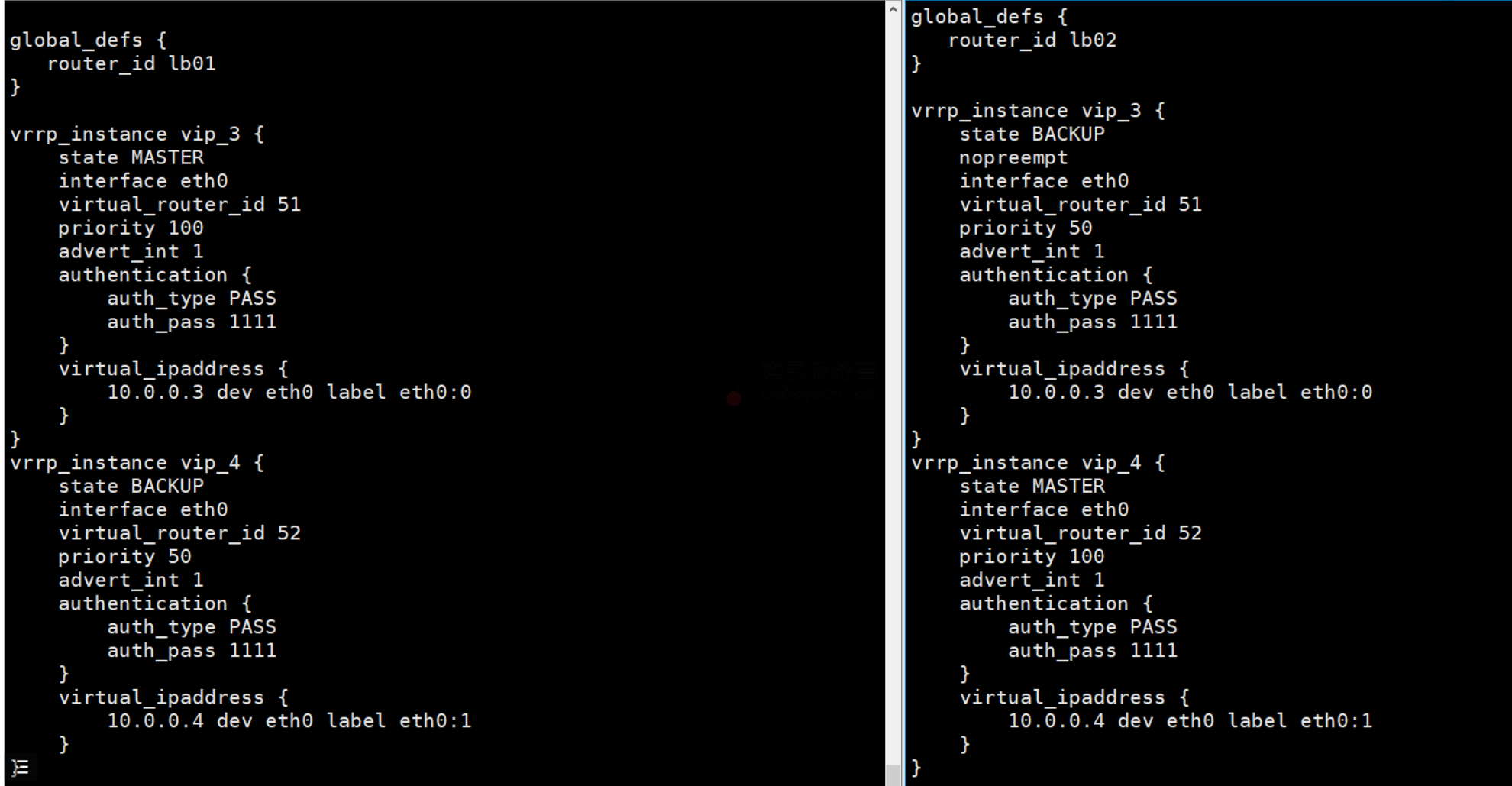 virtual_router_id 51 # 同1对主备之间这个id要一致.