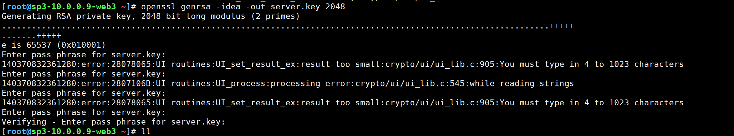 #创建私钥 私钥server.keyopenssl genrsa -idea -out server.key 2048