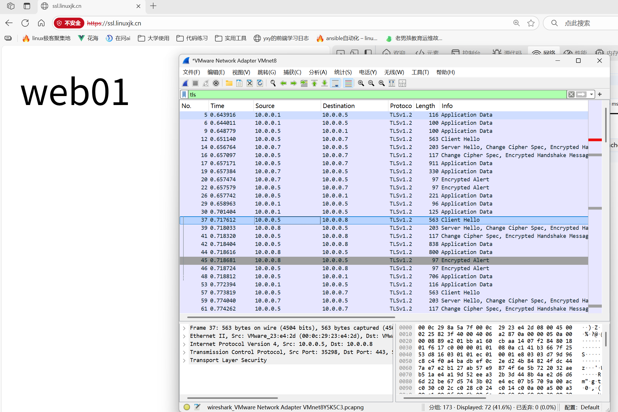 可以看出抓包信息中只有用户到负载之间才有tls的协议(https)