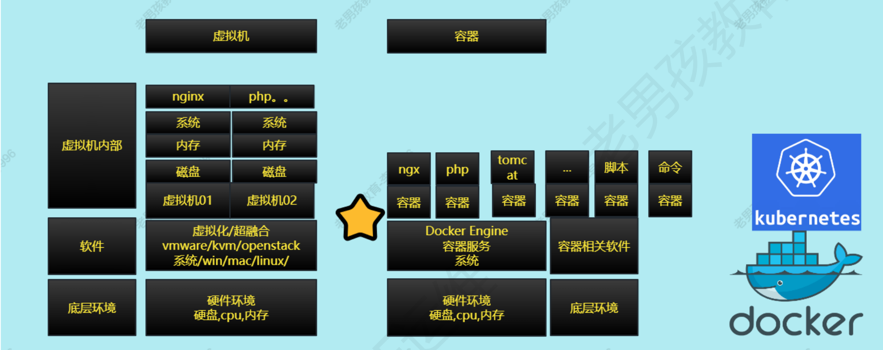 虚拟机:安装多个操作系统,每个系统都有完整的启动流程