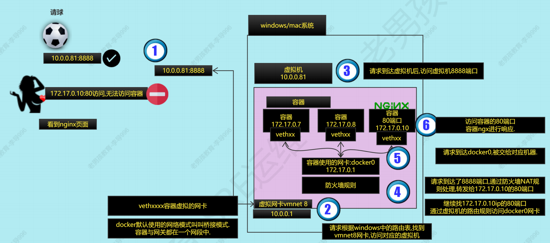 如果没有,则从远程仓库下载镜像,启动这个镜像,后台运行,访问容器