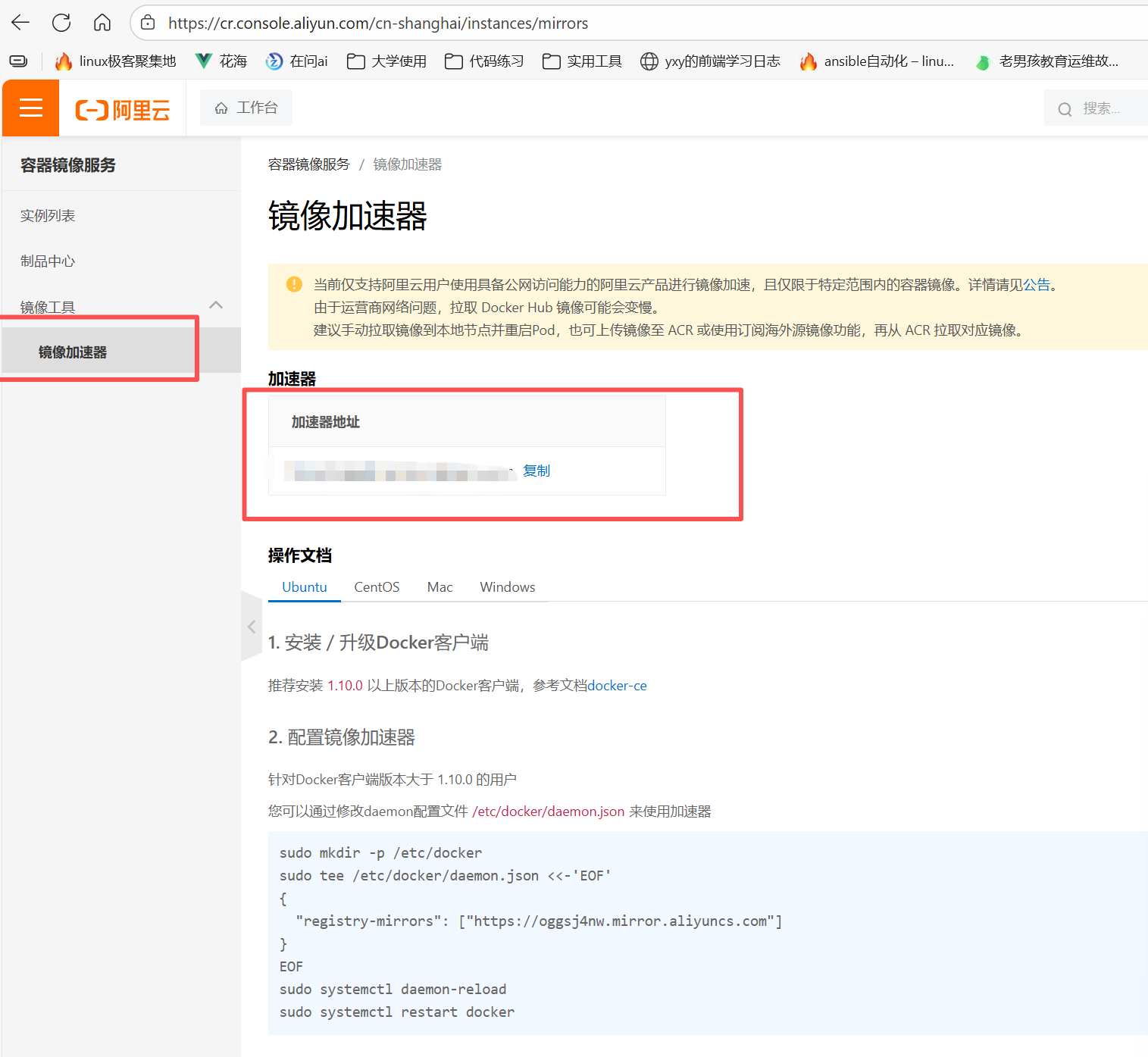 - 在左侧导航栏选择 镜像工具 > 镜像加速器。