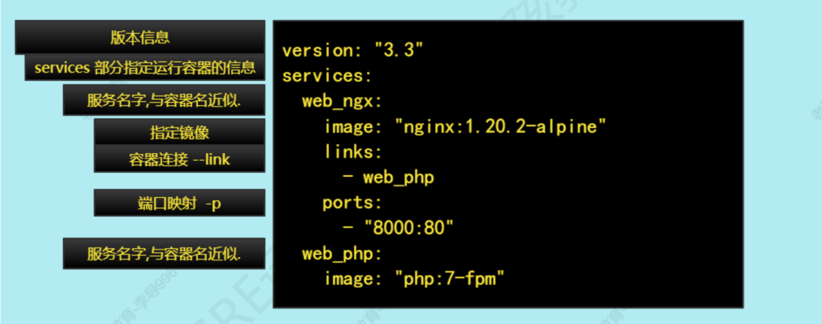 注意这里使用的links连接方式,在Docker Compose中,links 参数应该使用服务名(service name)而不是容器名(container name)。