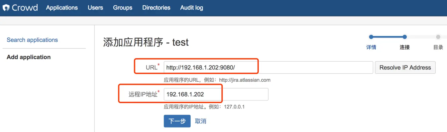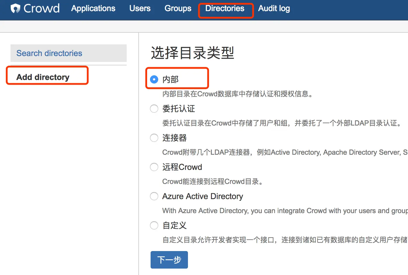 • 使用管理员登录crowd,新建一个Directory作为jira,confluence,fisheye的通用目录。