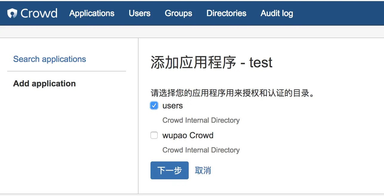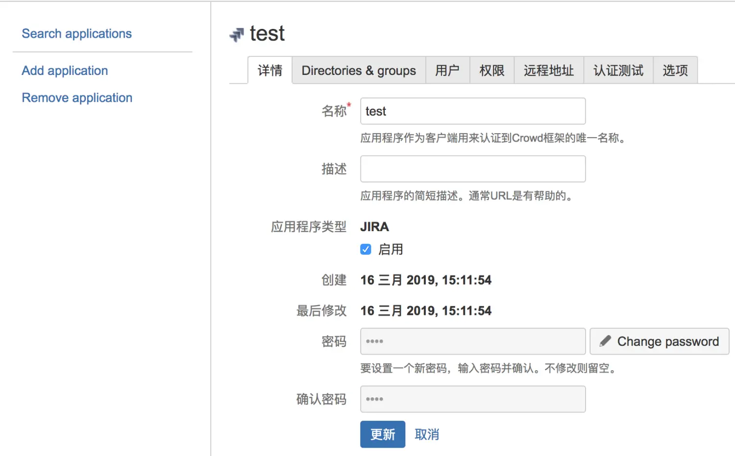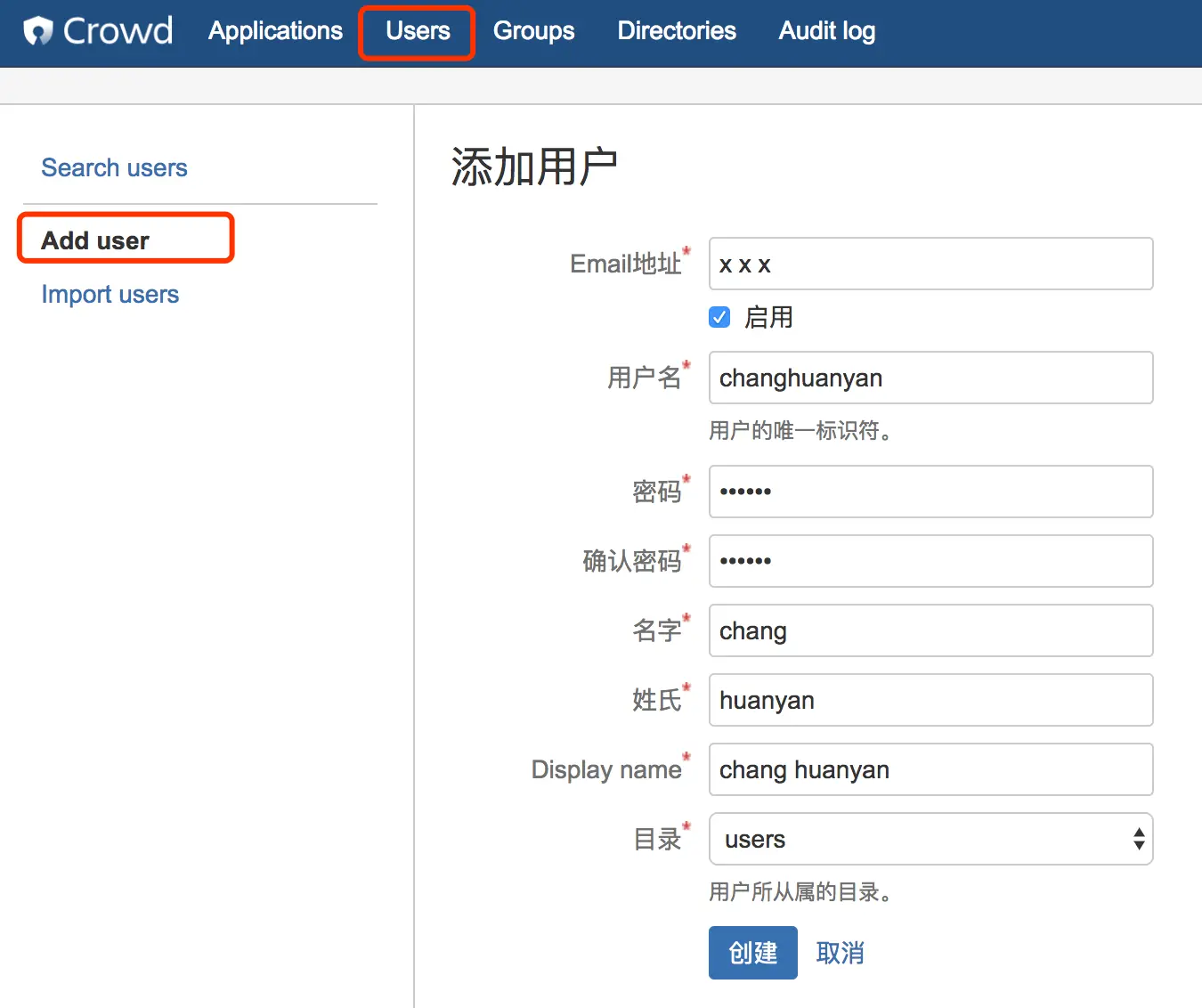 • 如jira那步添加应用程序,应用程序创建完毕,这个时候实现了对jira做集中认证,就是用户在confluence出现了crowd的用户组和用户。