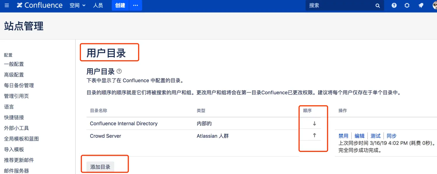 可以在Confluence中定义多个用户目录。但是,如果启用Crowd SSO集成,则只能从crowd.properties文件中定义的Crowd服务器进行身份验证。 要使用其他目录(例如Confluence Internal Directory)中的用户登录,您需要: 在Confluence管理控制台中,转到用户目录并禁用Crowd Server目录,或 通过恢复默认的Confluence身份验证器来禁用群组SSO。 禁用Crowd SSO的步骤: