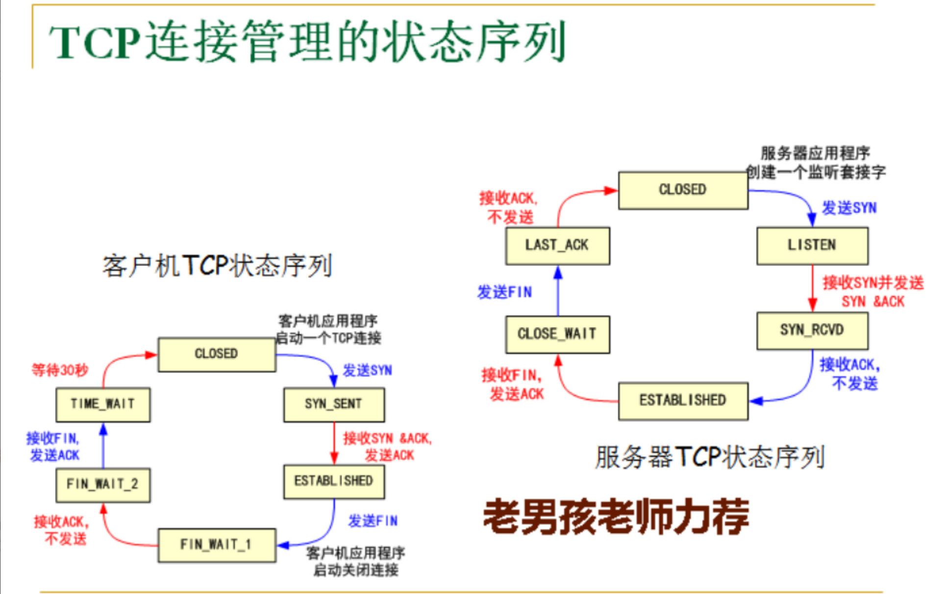 tcp3次握手,4次挥手的时候需要经历一个过程,在建立连接和断开连接的时候,服务端和客户端就有一些状态