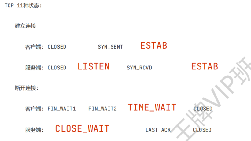 核心必会:CLOSED,ESTABLISHED,LISTEN,TIME_WAIT,CLOSE_WAIT