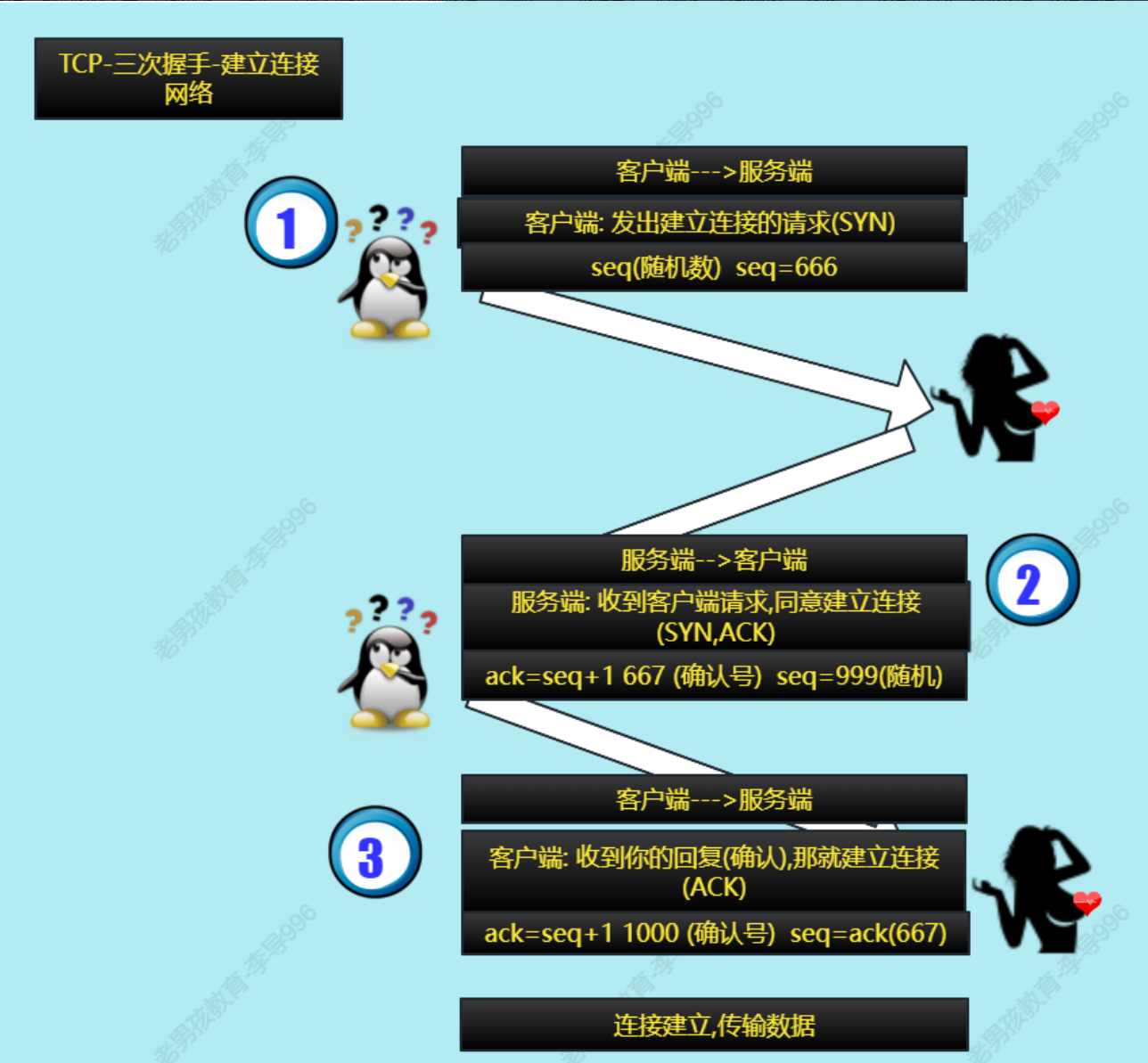 以上数据总结:seq=上一步的ack,ack=上一步的seq+1