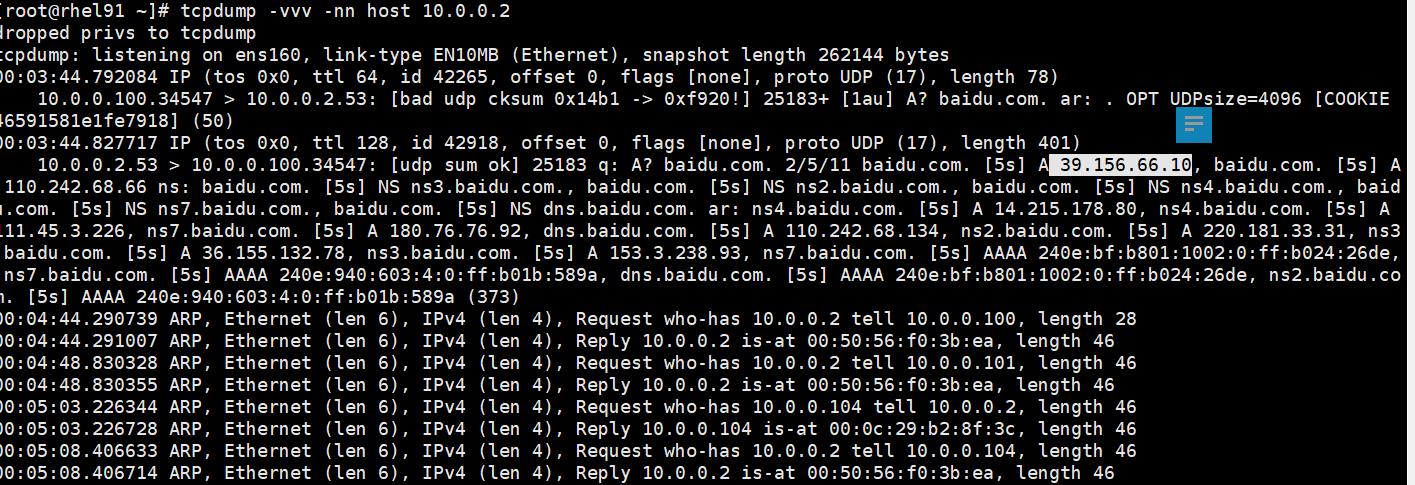 tcpdump -vvv -nn -i eth0 host 223.5.5.5(host后填写本机DNS解析地址)